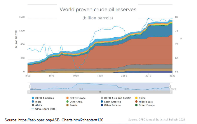 OPEC ülkeleri 2020 yılında dünyanın kanıtlanmış petrol rezervinin %79,9’na sahip