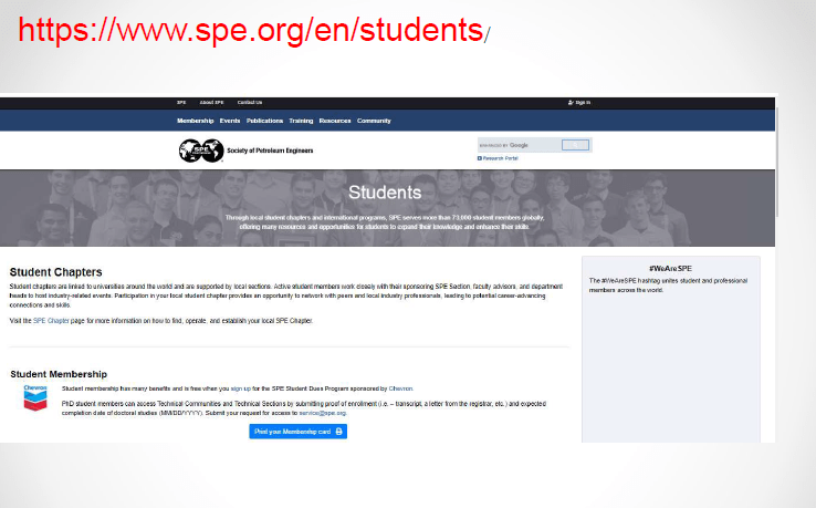 SPE öğrenci üyeliği internet sayfası