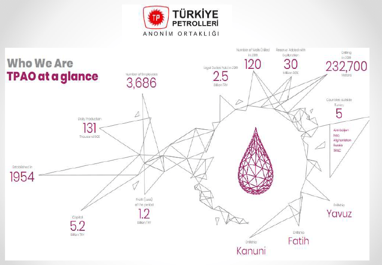 Karada ve denizde petrol ve doğal gaz keşifleri yapan Türkiye’nin petrol şirketi TPAO’nun temel amacı, Türkiye’nin petrol kaynaklarını geliştirerek dünyada Türkiye’nin sektördeki payını artırmaktır.